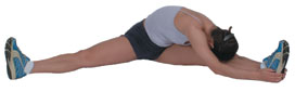 1. Sit on the floor with both legs spread wide apart, keeping the heels on the floor.