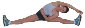 4. When you reach your maximum stretch without assistance, exhale and have your partner apply light pressure onto your legs to increase the stretch.