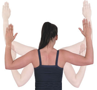 2. Holding a light dumb-bell in each hand, slowly lower the weights from above your chest, out to your sides at shoulder level.